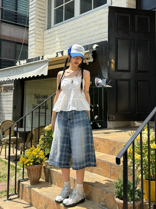 SaleWashed Checker Jorts