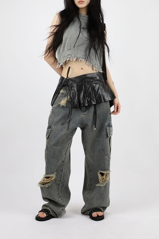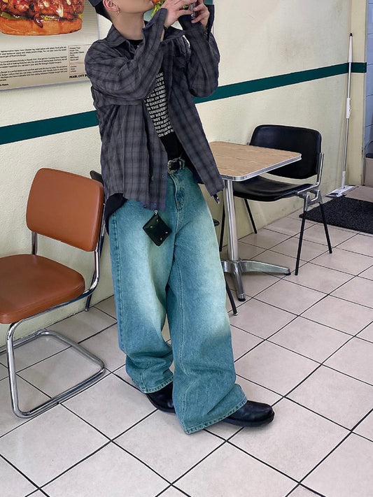Color Washing Denim Wide Jeans