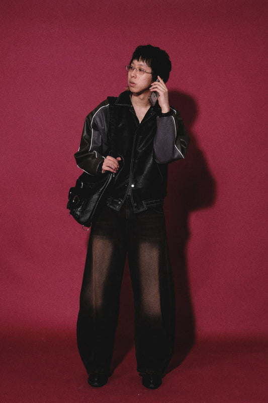 Lapel Collar Leather Jacket