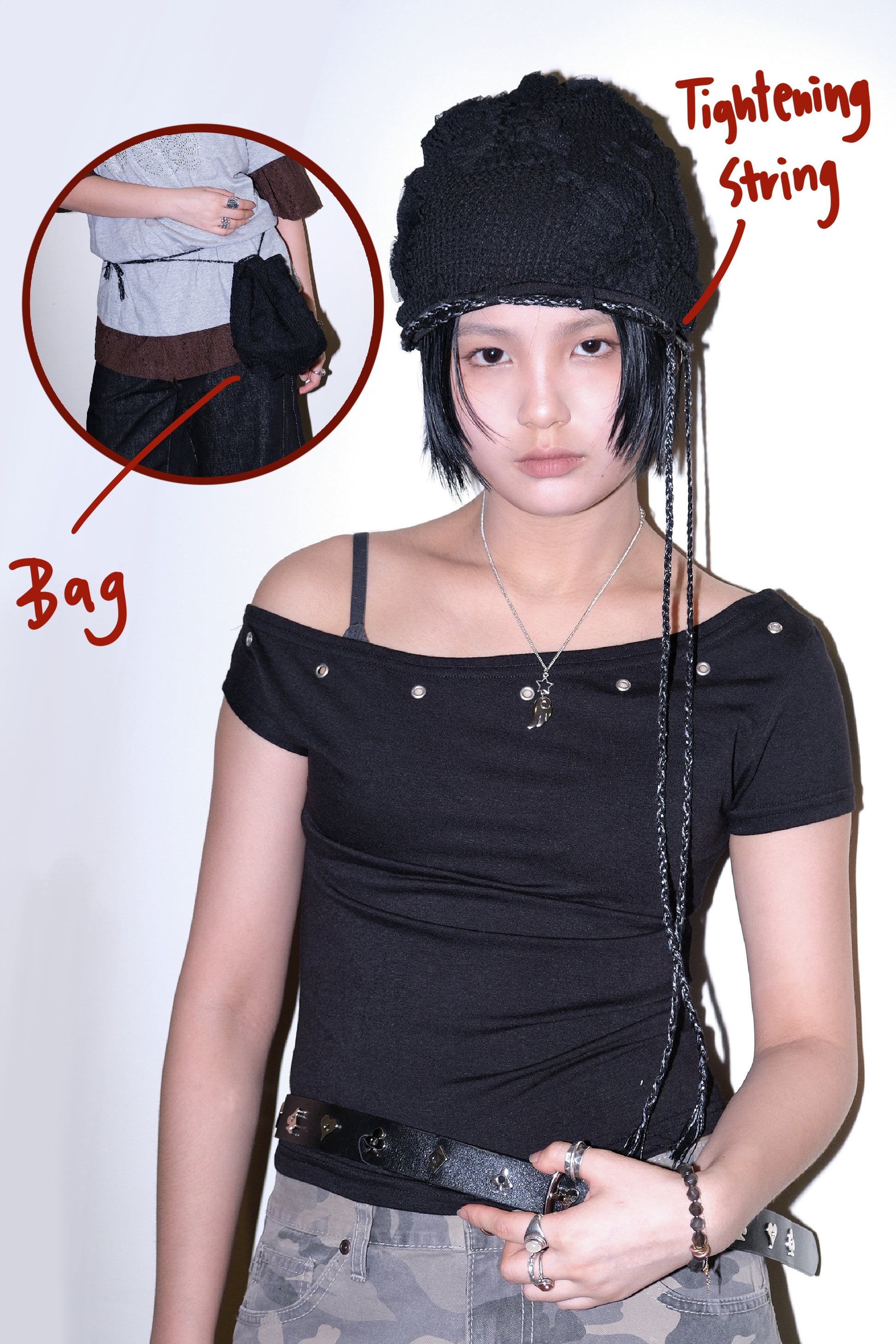 -繩子可以變成肩帶,把帽子變成袋子/腰包