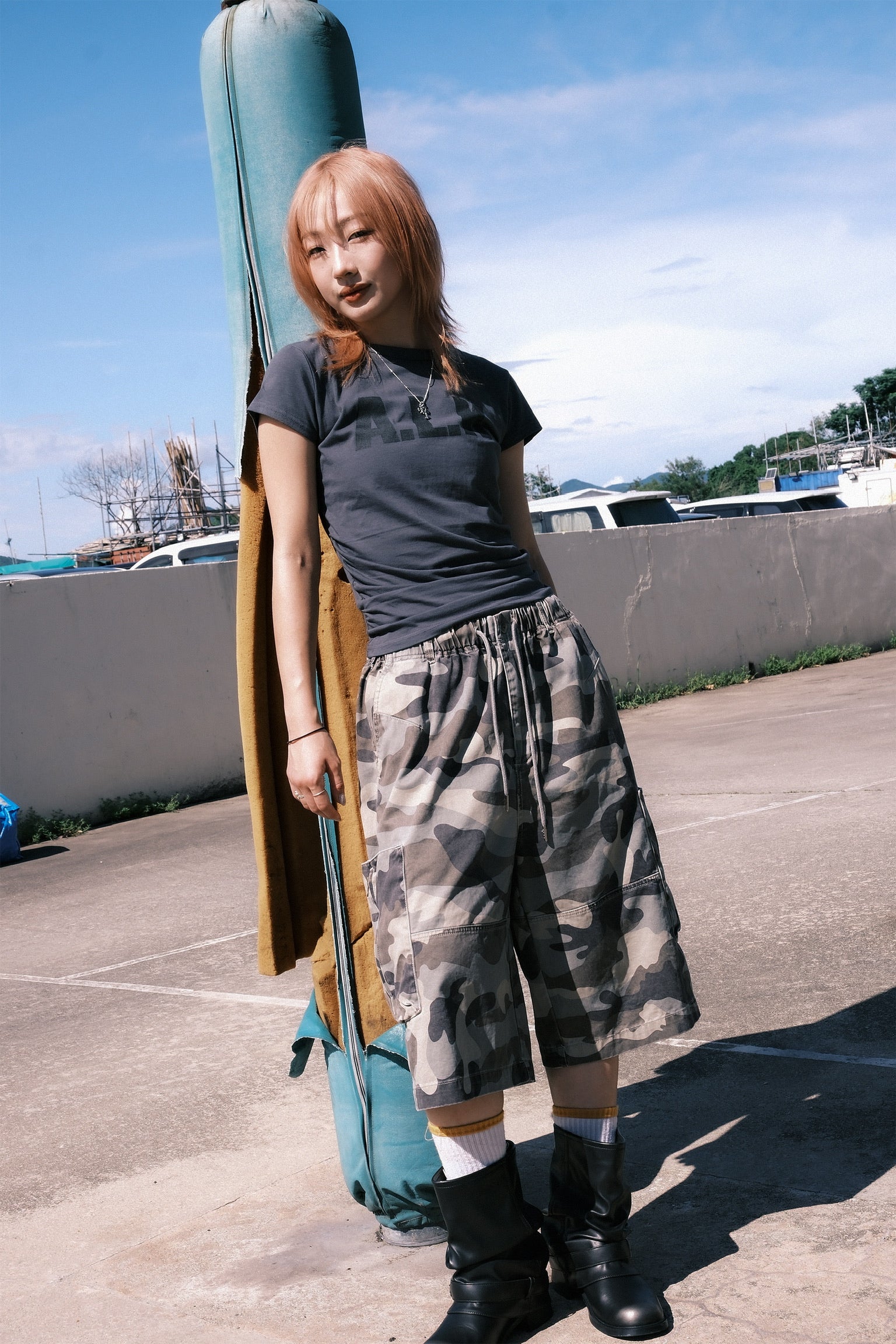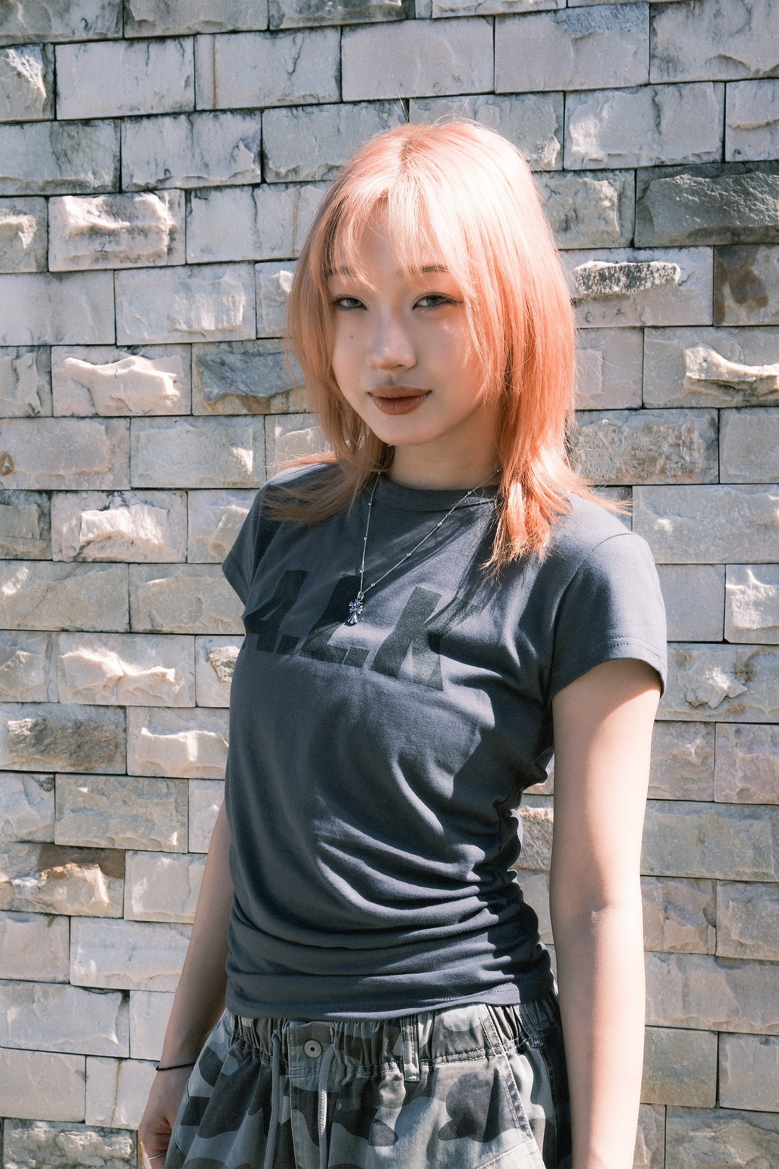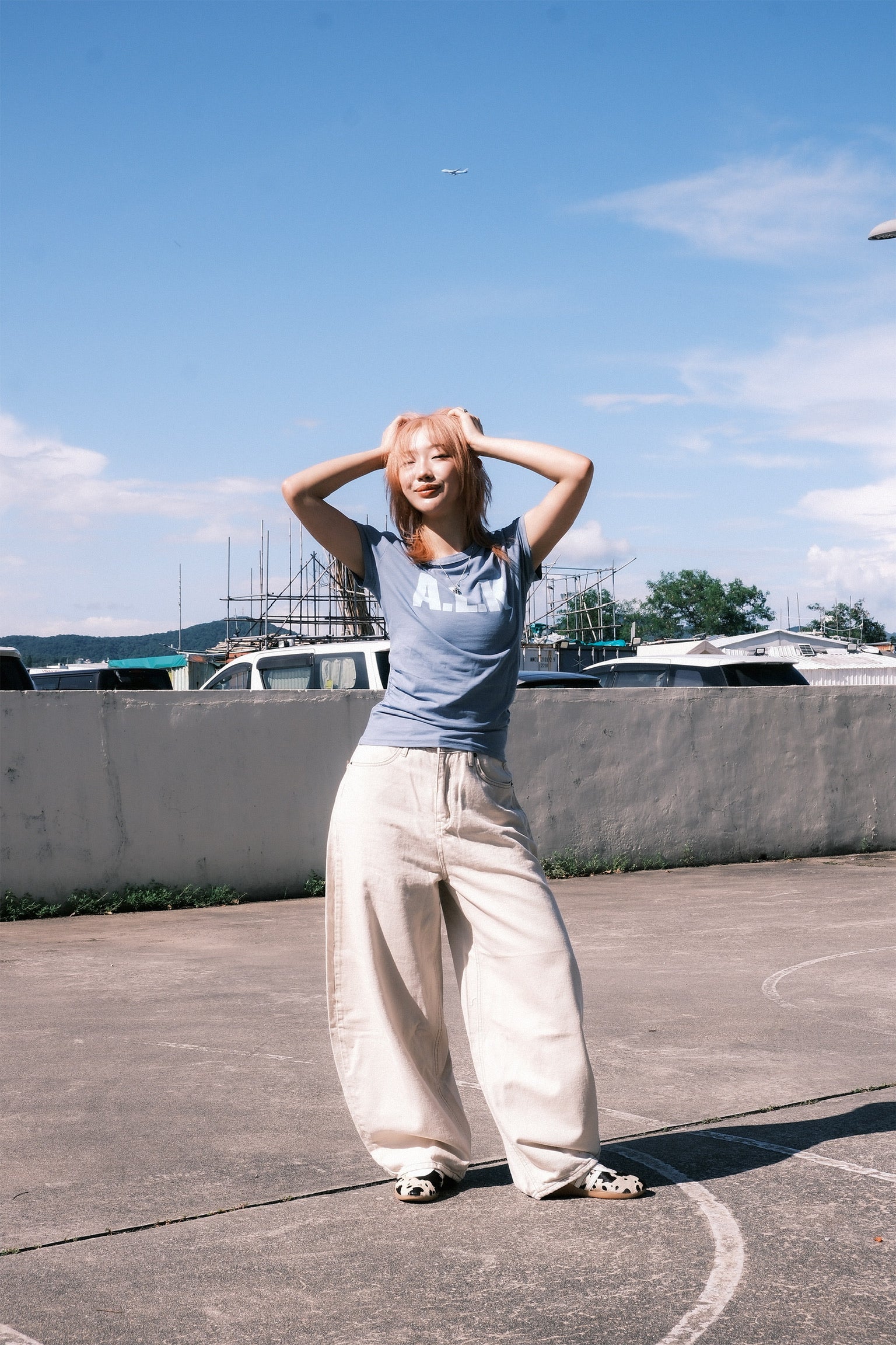 -簡單的圓領和半短身版型 它與各種下裝都能搭配得很好。