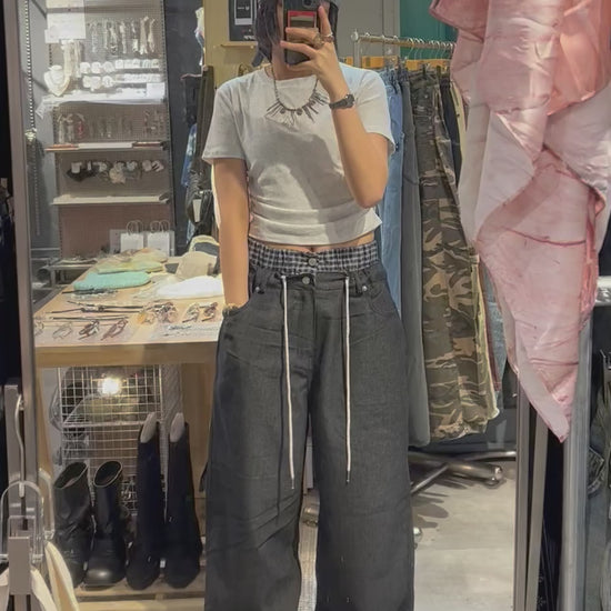 FREE : Waist 33~53, Hip 60 , Rise 38, Thigh 38, Hem 26, Total length 112