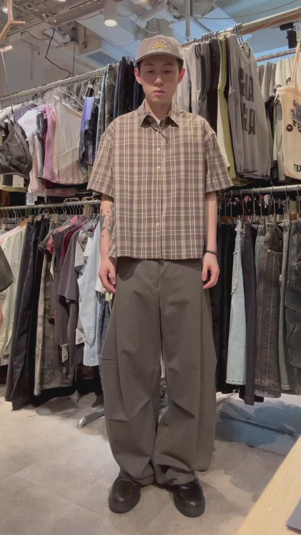 -闊度適中的氣球版型,腰線下方有皺褶細節,輪廓簡潔立體