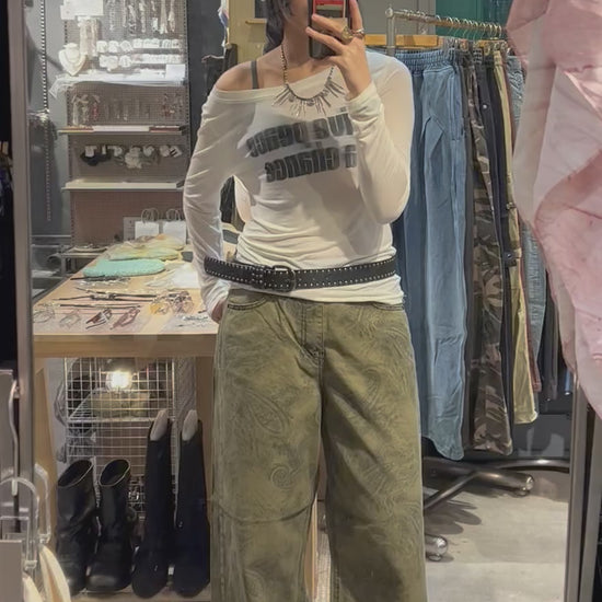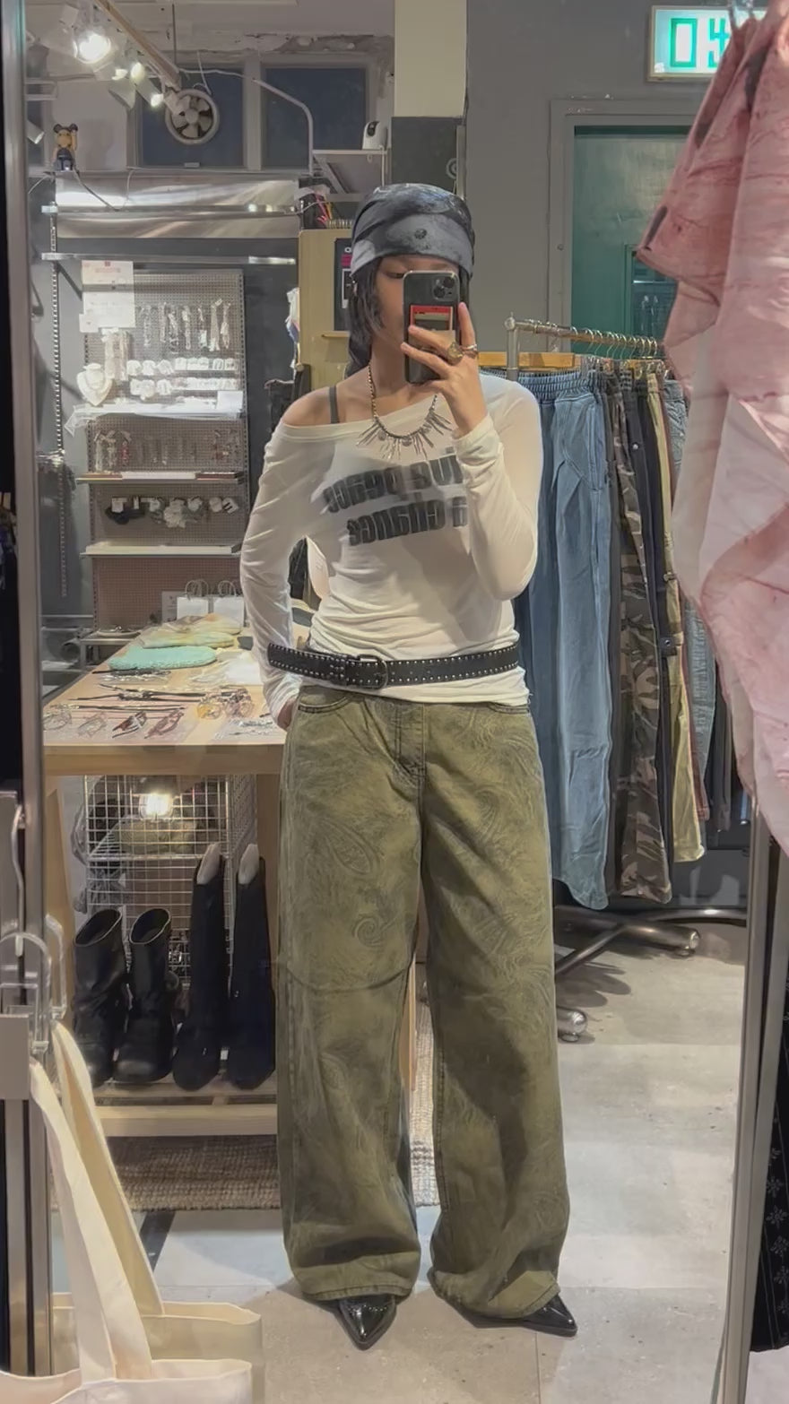 M : Waist 36/ Hip 57/ Rise 40 /Thigh 33.5/ Hem 28/ Total length 102