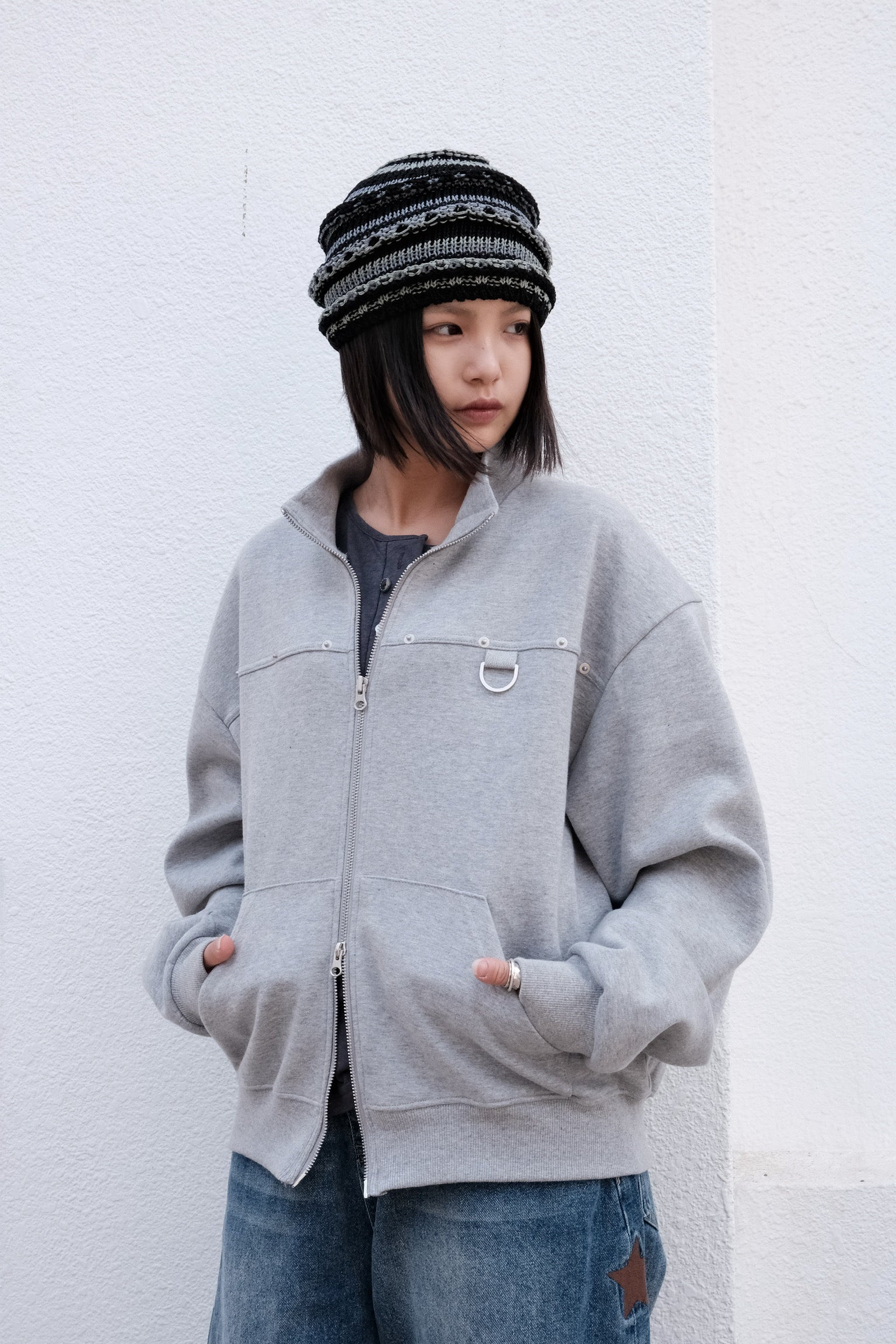 Joshua Eyelet Zip Up (grey)